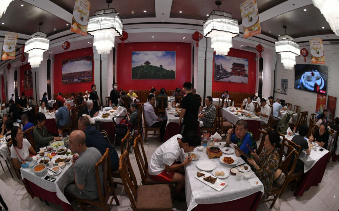 鼓楼马凯餐厅毗邻鼓楼、什刹海景区,是中轴线北段的首家中华老字号,中秋佳节很多市民游客相聚在此共度佳节,留下美好的团圆回忆。据鼓楼马凯餐厅经理张雪肖介绍,中秋假期每天店里包间都供不应求,大厅也一直顾客盈门,外卖窗口更是忙个不停。