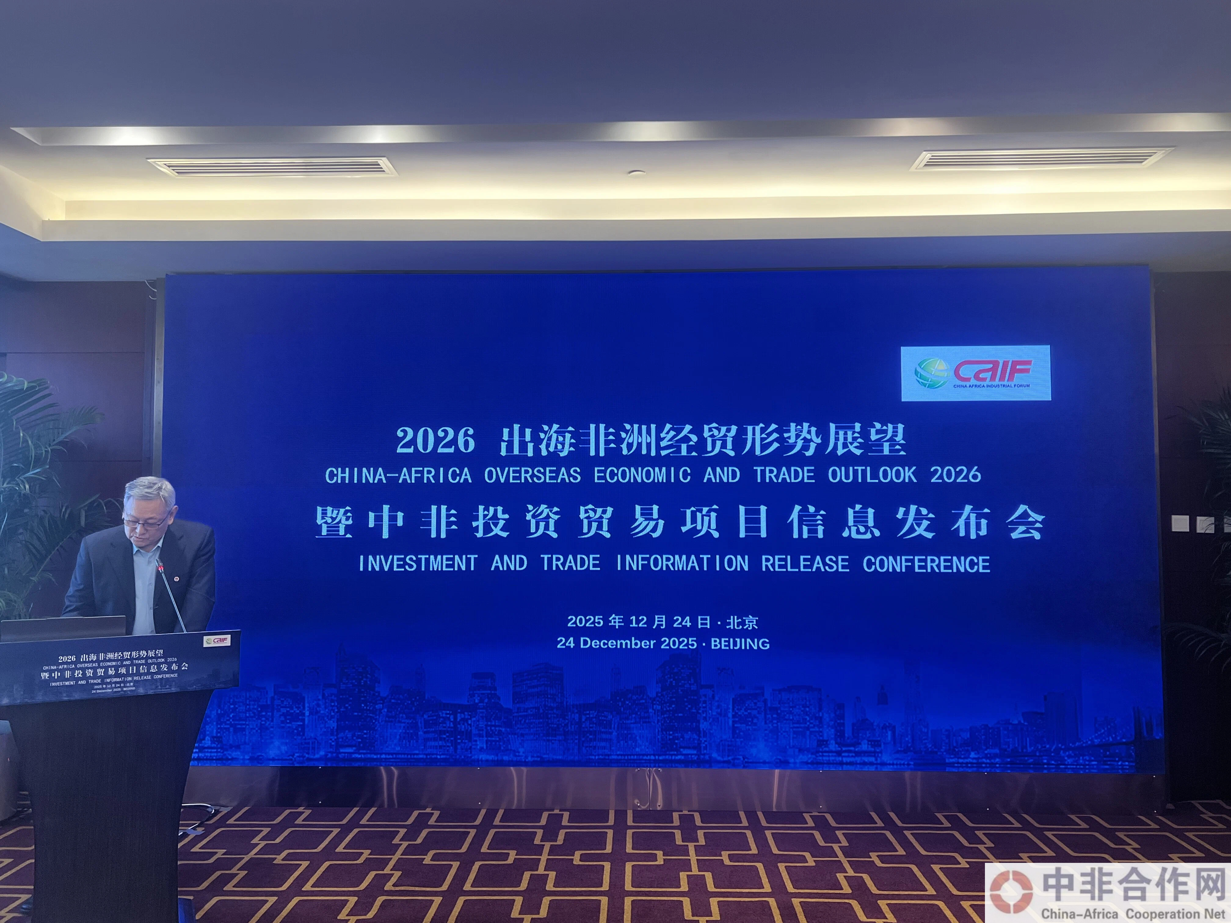 中非工业合作发展论坛(CAIF)于2025年12月24日在北京民族饭店举行“2026出海非洲经贸形势展望暨中非投资贸易项目信息发布会”。会议邀请国家相关部委领导、非洲专家、地方政府代表、企业家代表、新闻媒体等100余人出席大会。