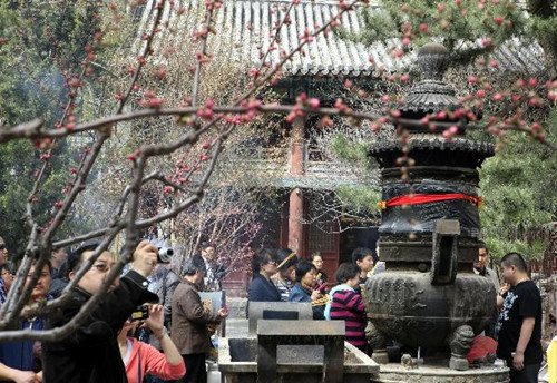 People visit Tanzhe Temple to enjoy Yulan Magnolia in Beijing, capital of China, April 9, 2011.