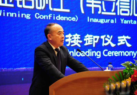 图为烟台港集团有限公司董事长周波在接卸仪式现场致辞。
