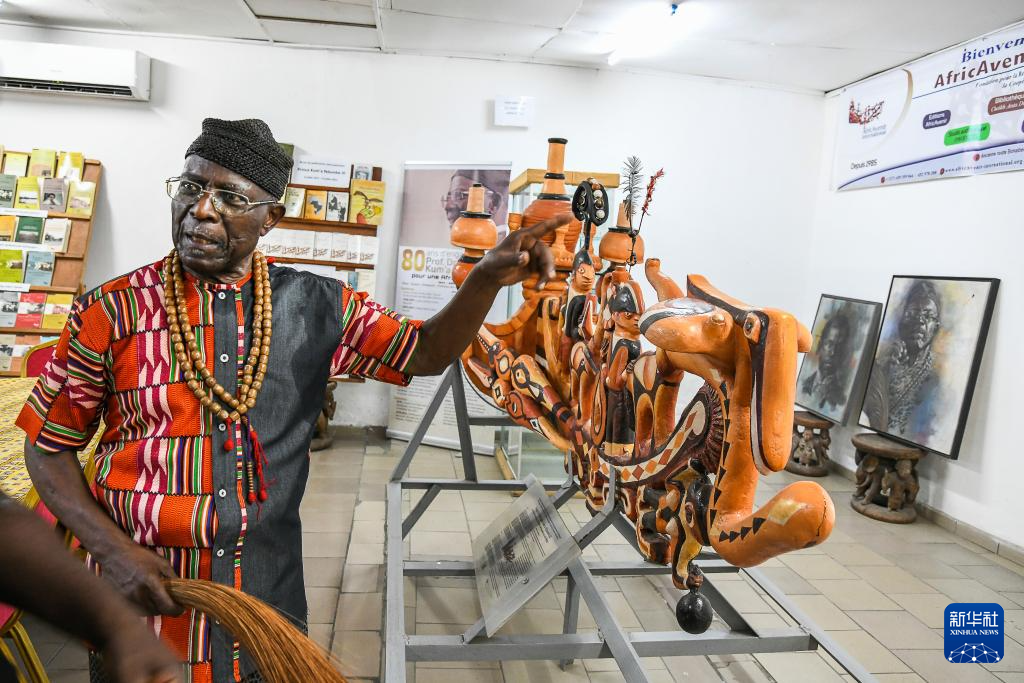3月17日,在喀麦隆杜阿拉,喀麦隆著名作家亚历山大·库马·恩敦贝三世介绍喀麦隆传统艺术品。新华社发(科普索摄) 非洲的历史深深刻有殖民烙印。“欧洲殖民者不仅带着武器来瓜分非洲,他们还千方百计地摧毁我们的精神世界。”他说,从奴隶制到殖民主义,再到时至今日仍未结束的“新殖民主义”,这些束缚非洲发展繁荣的枷锁,不仅摧毁非洲经济,更是对人性的深层摧毁。