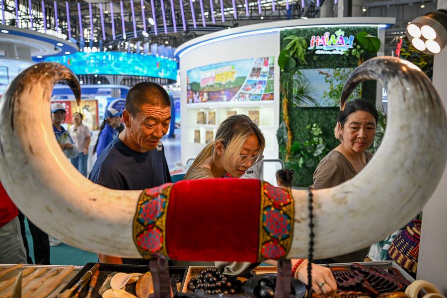 People visit the exhibition area of Ghana during the 5th China-Mongolia Expo in Hohhot, north China's Inner Mongolia Autonomous Region, Aug. 29, 2025. (Xinhua/Lian Zhen)