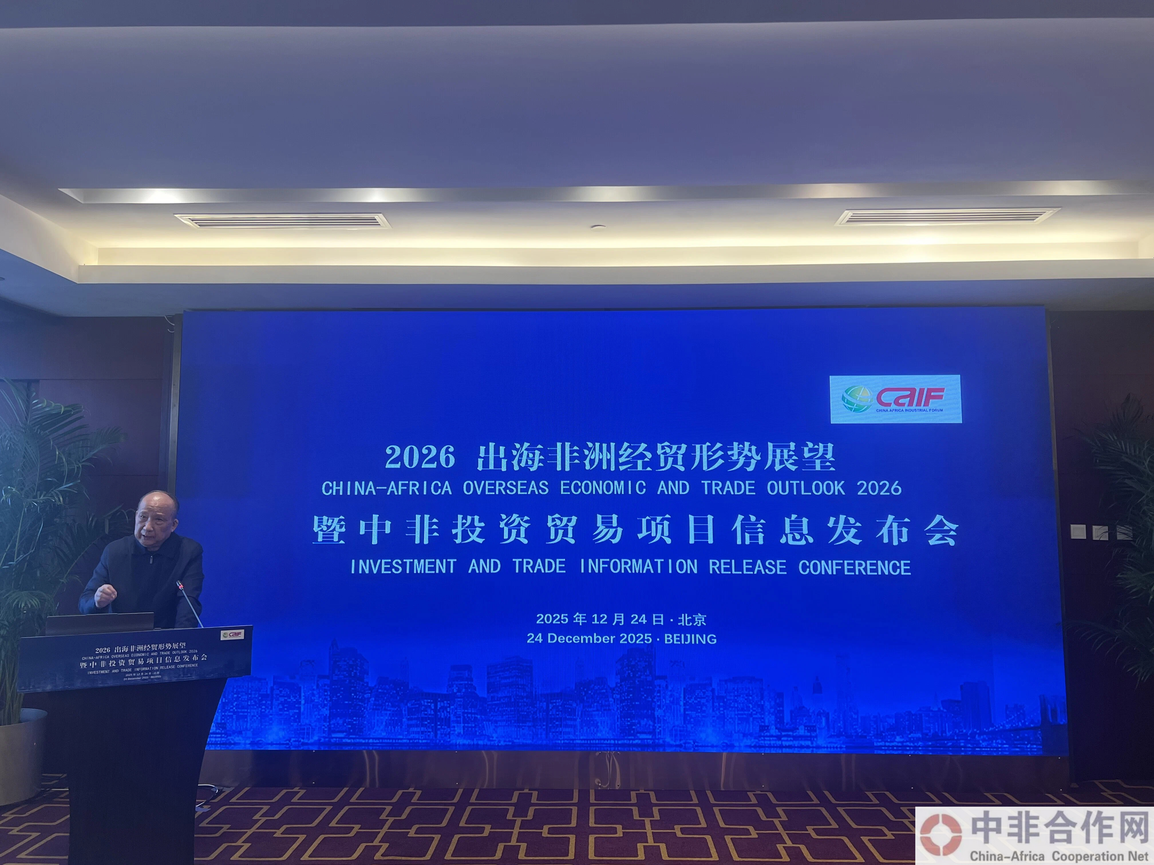 中非工业合作发展论坛(CAIF)于2025年12月24日在北京民族饭店举行“2026出海非洲经贸形势展望暨中非投资贸易项目信息发布会”。会议邀请国家相关部委领导、非洲专家、地方政府代表、企业家代表、新闻媒体等100余人出席大会。
