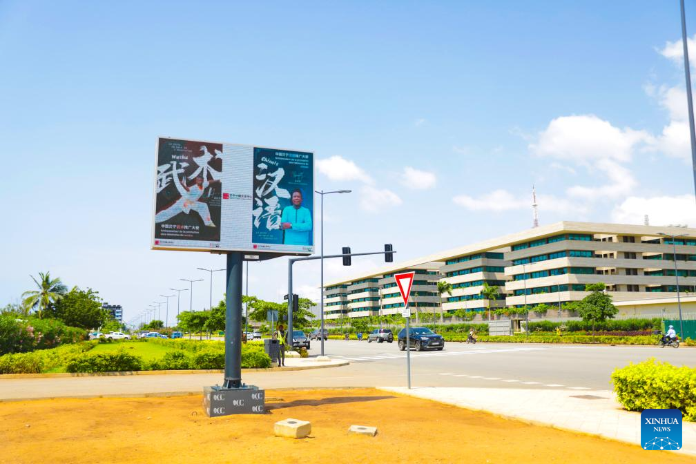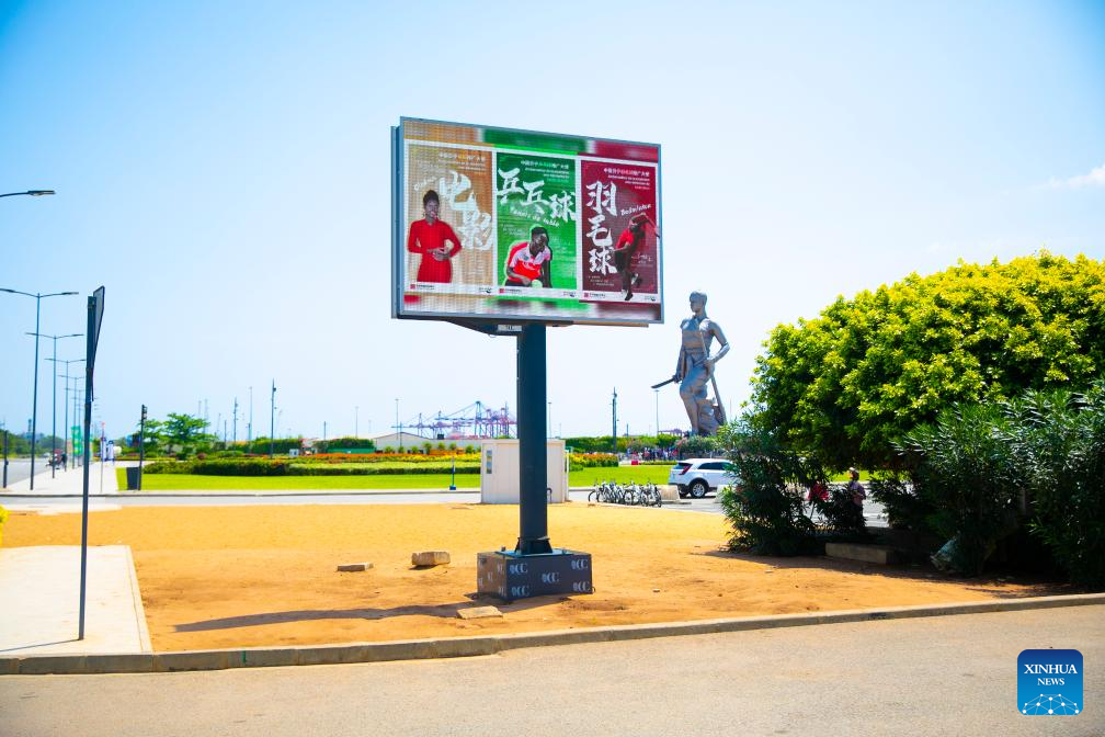 Posters of "Ambassador for Sino-Beninese promotion" aiming to welcome the 2026 China-Africa Year of People-to-People Exchanges are pictured in Cotonou, Benin, Nov. 10, 2025. (Chinese Cultural Center in Benin/Handout via Xinhua)