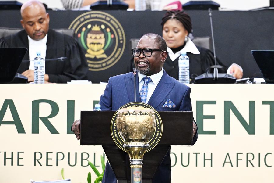 South African Finance Minister Enoch Godongwana delivers the 2026 Budget Speech in Parliament in Cape Town, South Africa, Feb. 25, 2026. (Photo by Xabiso Mkhabela/Xinhua)