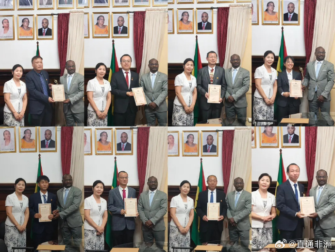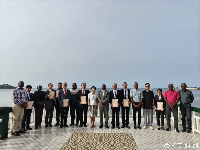 4月7日,圣多美和普林西比农业部向中国援圣普第四期农牧业技术援助项目组全体专家及中国农业农村部国际交流服务中心颁发荣誉证书,徐迎真大使和圣普农业部长庞特斯共同出席活动并致辞。使馆丁恬参赞、农技组全体专家和圣普农业部相关司局代表出席。