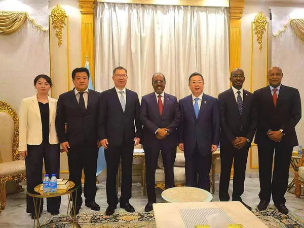 2026年4月13日,外交部非洲之角事务特使胡长春访问索马里,会见索总统马哈茂德。索渔业与蓝色经济部长阿丹、国家安全顾问阿维斯、驻索使馆大使王昱等在座。